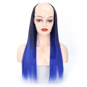 Peluca de pelo liso largo realista mate americano europeo gorra en forma de U 360 sin costuras media peluca gorra alta sin pegamento tamaño pequeño