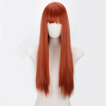 Peluca larga y recta de cabeza completa de estilo coreano en encaje marrón claro tamaño de gorra pequeña flequillo dulce nuevo pelo sintético naranja para damas