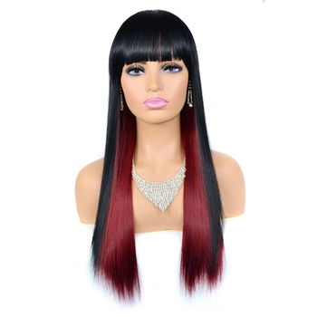 Peluca de pelo liso de alta calidad europea americana encaje marrón oscuro pequeño largo negro Borgoña teñido flequillo Internet estilo celebridad