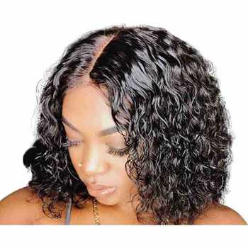 Vente chaude Nouveau Produit Populaire Europe Amérique Femmes Naturel Transparent Avant Noir Court Bouclés Perruque Postiche Petit Stock