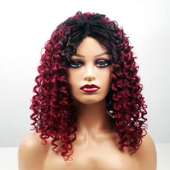 Transfrontalier bordeaux raie moyenne Afro vague cheveux courts bouclés femmes africaines brun foncé haute température fibre synthétique 150%