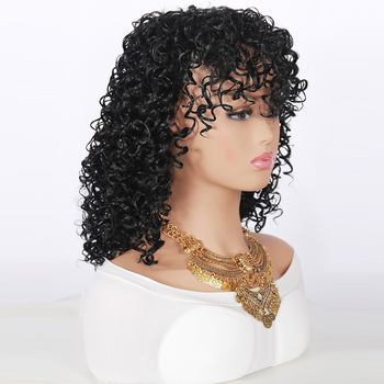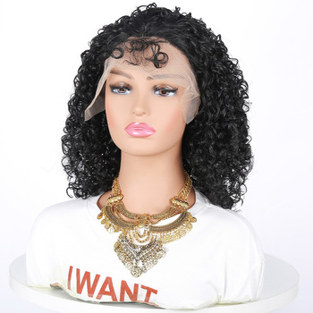 Parrucche frontali da donna europee americane transfrontaliere in pizzo ad alta temperatura in fibra naturale a 120% densità nera riccioli piccoli ricci corti