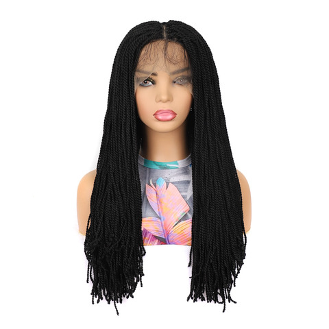 Peruca dianteira do laço sintético das mulheres de alta qualidade com Transparente Lace Fine Double Strand Twist Braid Cabelo Curto Bangs para Exportação